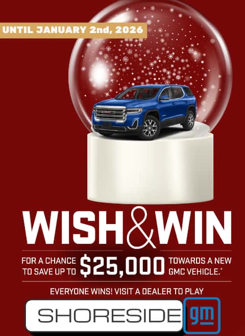 * $150 instant rebate on the purchase of a set (4 tires) of Bridgestone Blizzak winter tires when you purchase, finance or lease an eligible 2024-2027 GM vehicle between January 3, 2026 to December 31, 2026. New retail vehicles only; purchase, finance or lease of used, certified pre-owned or fleet vehicles not eligible for offer. Eligible tires must be purchased at time of delivery of vehicle. Rebate is non-stackable with other Bridgestone consumer offers. Rebate applied before applicable taxes. Offer is subject to tire availability. No rain checks available. This offer may be changed, cancelled or extended at any time without notice. Conditions apply. See participating dealer for details.n n* $100 instant rebate on the purchase of a set (4 tires) of Firestone WinterForce winter tires when you purchase, finance or lease an eligible certified pre-owned GM vehicle between January 3, 2026 to December 31, 2026. Certified pre-owned vehicles only, purchase, finance or lease of fleet vehicles not eligible for offer. Eligible tires must be purchased at time of delivery of vehicle. Rebate is non-stackable with other Firestone consumer offers. Rebate applied before applicable taxes. Offer is subject to tire availability. No rain checks available. This offer may be changed, cancelled or extended at any time without notice. Conditions apply. See participating dealer for details.nn1 TIRE 30-DAY PRICE MATCH GUARANTEE: Your local dealer will match the competition's prices. If you purchase one of the aftermarket tire brands listed below and later find a competitive price on a qualifying brand within 30 days of the purchase, we’ll refund the difference. Tire Brands: BFGOODRICH, BRIDGESTONE®, CONTINENTAL, FIRESTONE®, GENERAL, GOODYEAR®, HANKOOK, KELLY, MICHELIN, PIRELLI, UNIROYAL, KUMHO, COOPER. The price match applies to the brands listed above. Competitive Prices: The competitive price you find must be in a valid ad, written estimate or Internet quote for identical, new tires. The tires must be an exact match in brand, tire line, size, load rating and speed rating to be eligible for the price match guarantee. All competitive quotes (including internet quotes) must come from a local competing tire retailer and installer (with a physical location within 100km of your participating GM retailer). The competitive price must be valid within 30 days of your purchase of any of the tire brands listed above. Service and Installation: The price match guarantee is only valid on the tire price and does not include installation/labour. Offer available to retail customers only at participating Canadian Chevrolet, Buick, GMC and Cadillac dealers. Offer valid from January 1, 2026 to December 31, 2026. GM Canada reserves the right to cancel, modify or amend the offer without notice. Conditions and limitations apply. May not be combined with other offers and programs.